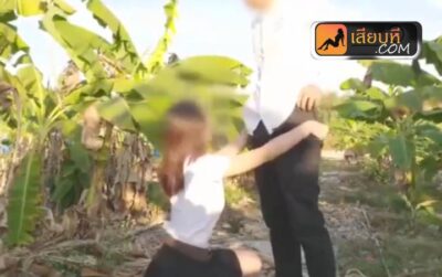คลิปหลุดนักศึกษา เปลี่ยนบรรยากาศ พากันไปเย็ดในป่ากล้วย โม๊คควยแล้วยืนเย็ดแตกใส่กระโปรง ซอยหีชุดนักศึกษา